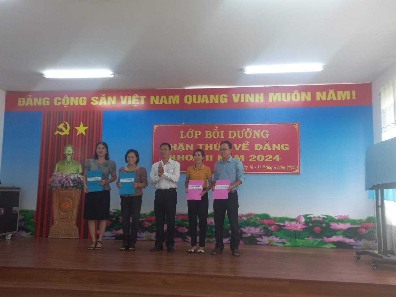 Sáng ngày 10/6/2024, Ban Tổ chức Thành ủy phối hợp với Trung tâm chính trị thành phố tổ chức khai giảng Lớp Bồi dưỡng nhận thức về Đảng khóa II – 2024. Đồng chí Đoàn Thị Hương Hà - Ủy viên Ban Thường vụ, Trưởng Ban Tổ chức Thành ủy; đồng chí Đào Duy Thành - Ủy viên Ban Thường vụ, Trưởng Ban Tuyên giáo, Giám đốc Trung tâm chính trị thành phố đã đến dự, cùng với 118 hoc viên là cán bộ, đoàn viên, học sinh thuộc 25 chi, đảng bộ trực thuộc Thành ủy.