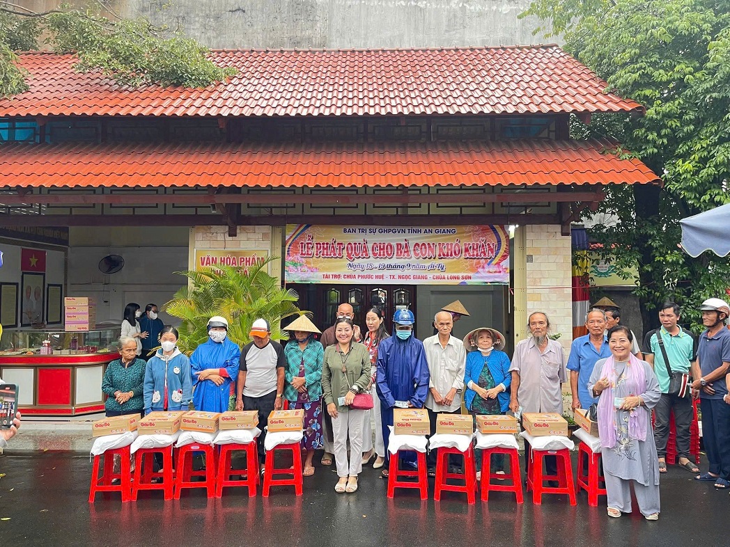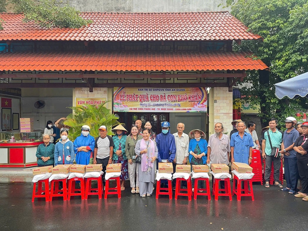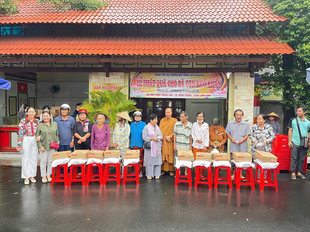 Hưởng ứng phong trào “Cả nước chung tay vì người nghèo – Không để ai bị bỏ lại phía sau” do Ủy ban Trung ương MTTQ Việt Nam phát động, ngày 07 tháng 11 năm 2025, Ban Trị sự Giáo hội Phật giáo Việt Nam tỉnh An Giang đã tổ chức trao quà hỗ trợ cho các hộ cận nghèo, hộ có hoàn cảnh khó khăn tại Chùa Phước Huệ, phường Long Xuyên, tỉnh An Giang.