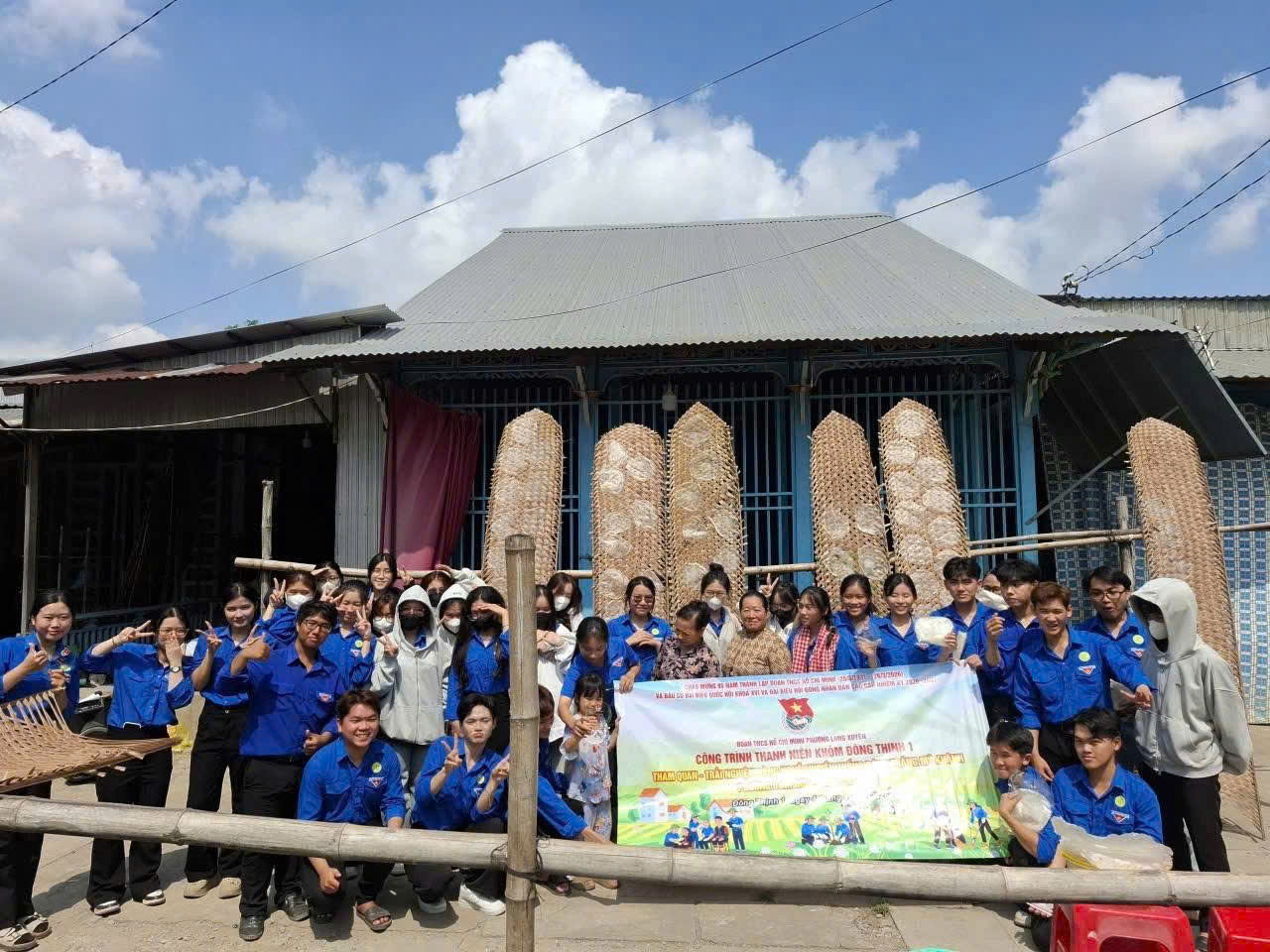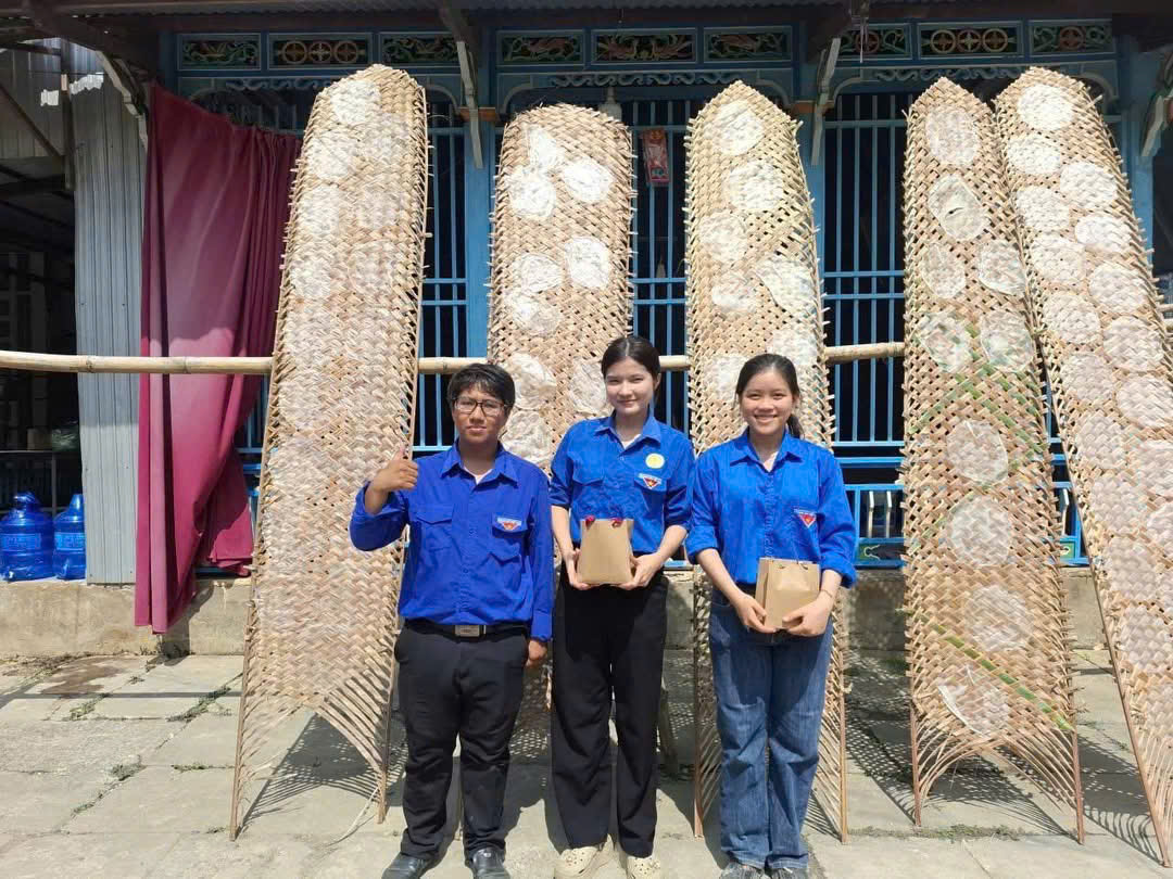 Không chỉ dừng lại ở việc tham quan, tìm hiểu, các bạn trẻ còn được trực tiếp trải nghiệm các công đoạn làm bánh như tráng bánh, phơi bánh và đóng gói sản phẩm. Qua từng thao tác, từng công đoạn đòi hỏi sự khéo léo, tỉ mỉ, đoàn viên thanh niên càng thêm trân trọng những sản phẩm thủ công truyền thống – kết tinh từ công sức và tâm huyết của người làm nghề.
