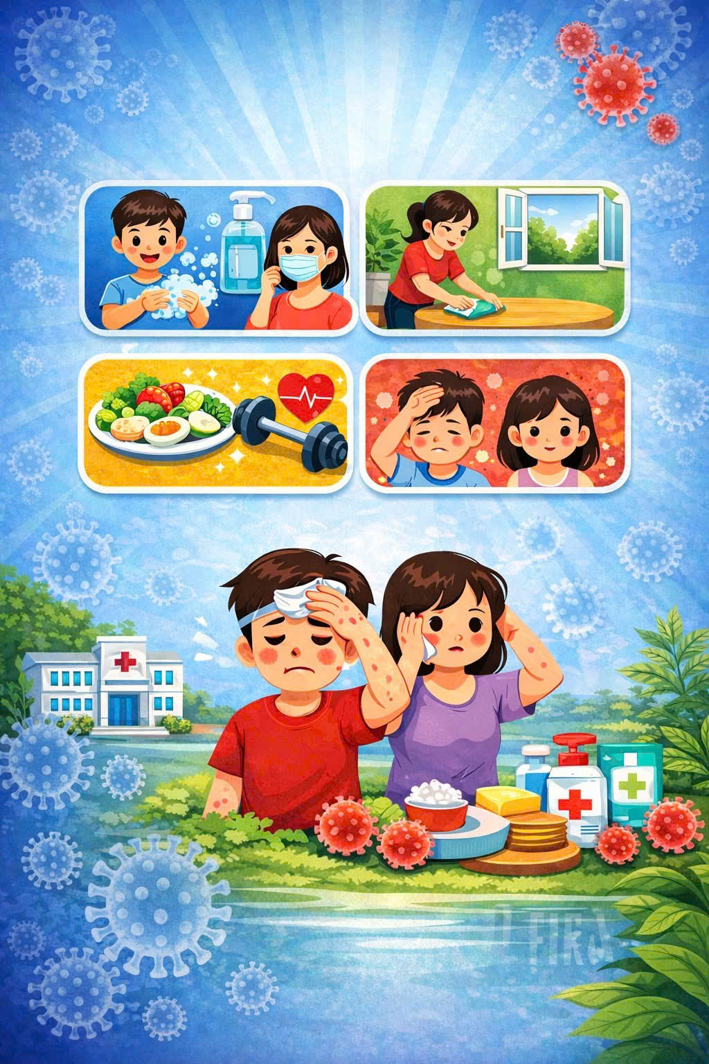 🥗 Nâng cao sức đề kháng: Duy trì chế độ dinh dưỡng hợp lý, ăn uống đủ chất; tích cực rèn luyện thể dục thể thao để tăng cường thể lực.