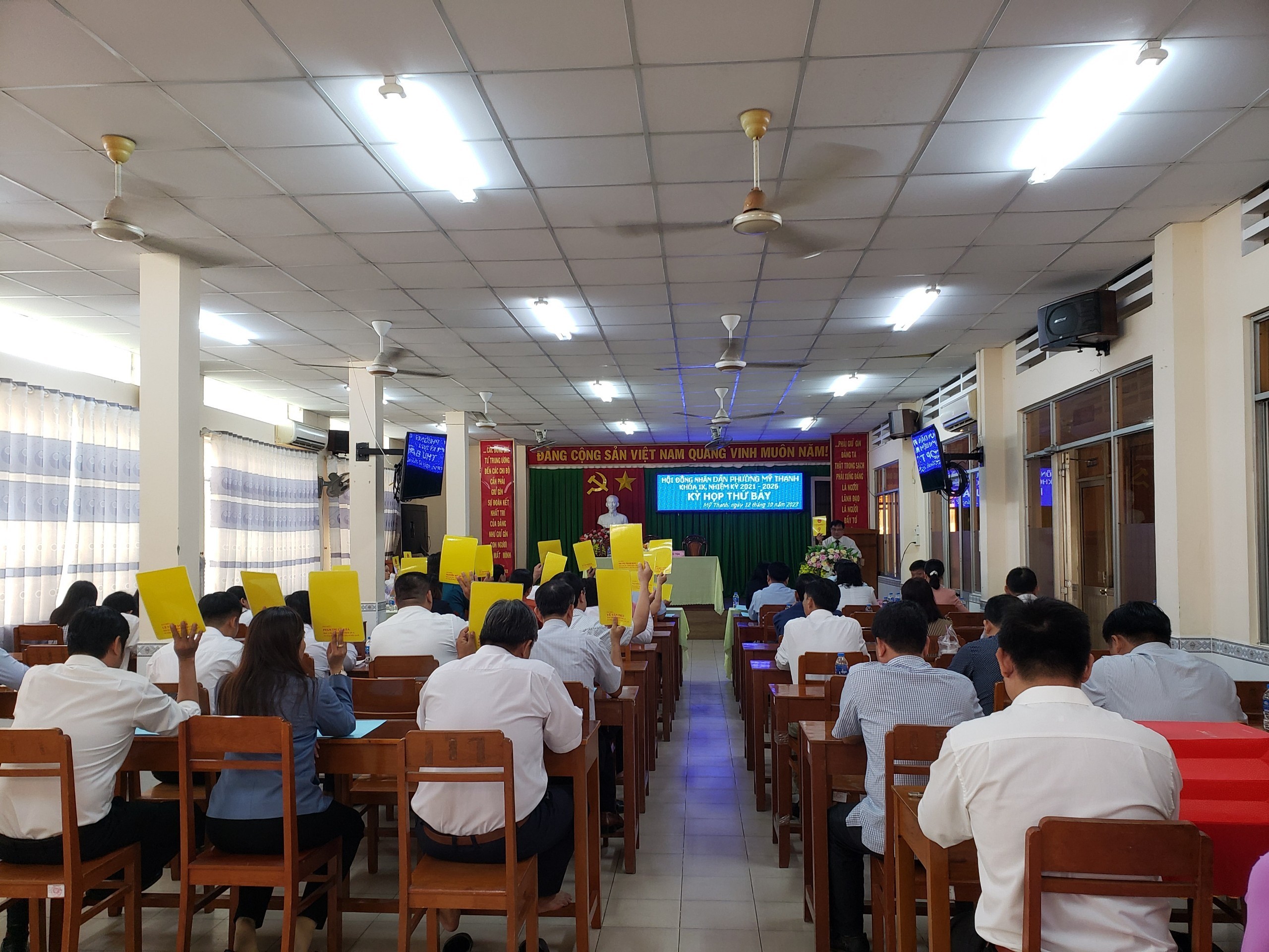 Sáng ngày 12/10/2023, Thường trực HĐND phường Mỹ Thạnh khóa IX, nhiệm kỳ 2021 - 2026 đã tổ chức thành công kỳ họp thứ lần thứ bảy (chuyên đề) để xem xét, quyết định công tác nhân sự Ủy ban nhân dân phường khóa IX, nhiệm kỳ 2021 – 2026. Tham dự có bà Huỳnh Thị Thuý – Phó Chủ tịch HĐND thành phố Long Xuyên, đại diện lãnh đạo các phòng, ban thành phố, Thường trực Đảng uỷ - HĐND - UBND – UB MTTQ phường; các vị đại biểu HĐND phường, đại diện các ban, ngành, đoàn thể phường, trường học, 9 khóm trên địa bàn cùng tham dự.