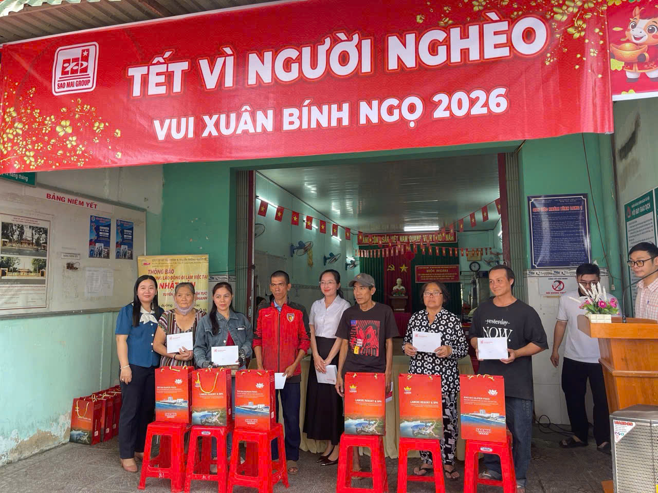 Từ sự chung tay đầy trách nhiệm và nghĩa tình của Chùa Bình An, Đình Bình Đức, Công ty Cổ phần Tập đoàn Sao Mai cùng các mạnh thường quân trong và ngoài địa phương, chương trình đã trao tặng 415 phần quà Tết với tổng trị giá 114.500.000 đồng. Mỗi phần quà được trao tận tay bà con không chỉ là sự hỗ trợ về vật chất, mà còn là sự động viên tinh thần kịp thời, gửi gắm yêu thương, sẻ chia và những lời chúc tốt đẹp nhân dịp xuân về, giúp các gia đình đón Tết vui tươi, đầm ấm và trọn vẹn hơn.