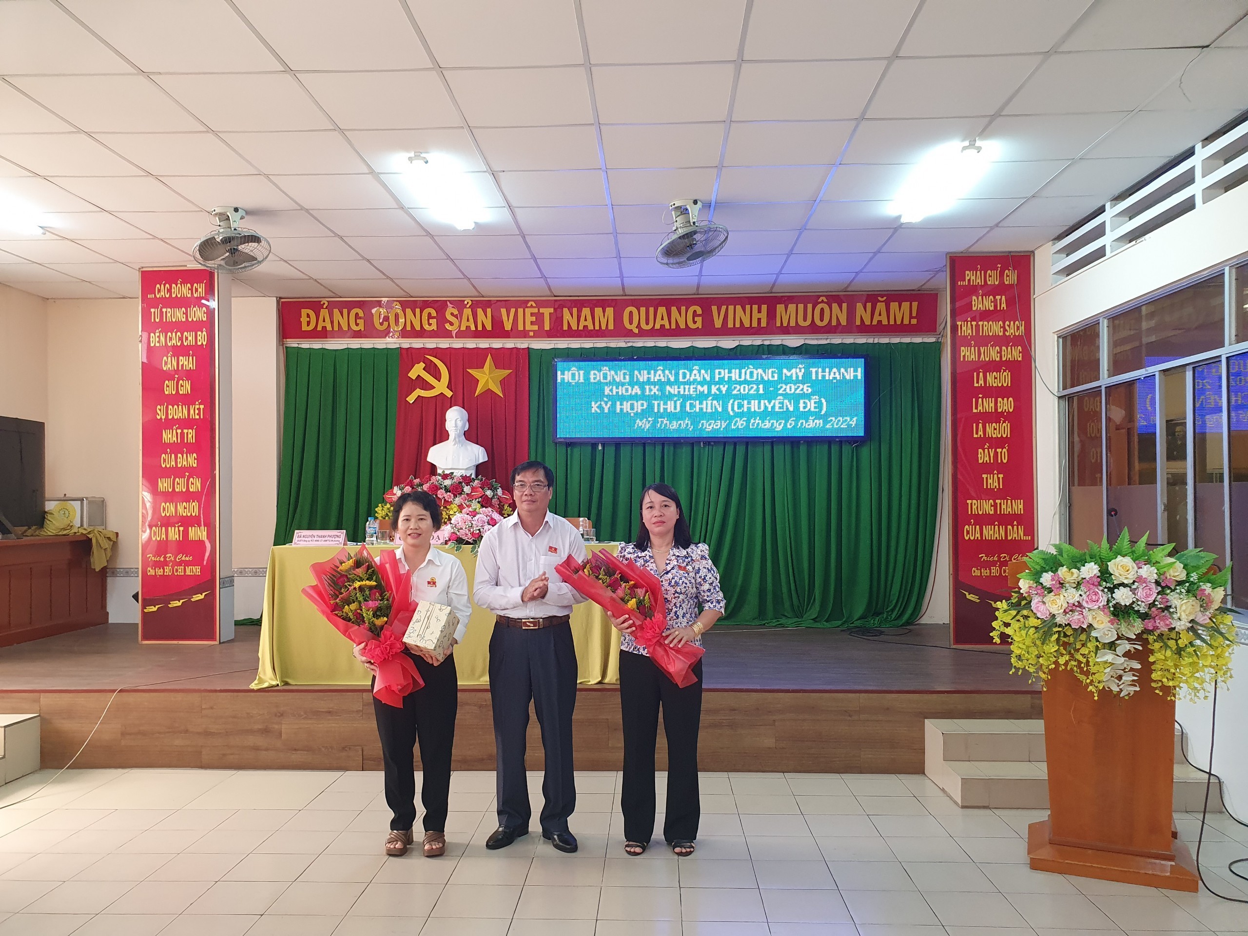 Sáng ngày 06/6/2024, Thường trực HĐND phường Mỹ Thạnh khóa IX, nhiệm kỳ 2021 - 2026 tổ chức kỳ họp thứ chín (chuyên đề) để xem xét, quyết định công tác nhân sự HĐND phường khóa IX, nhiệm kỳ 2021 – 2026. Bà Huỳnh Thị Thuý – Thành uỷ viên, Phó chủ tịch HĐND thành phố Long Xuyên; bà Nguyễn Thị Kim Thoa – Phó trưởng Ban Tổ chức Thành uỷ; Thường trực Đảng uỷ - UBND phường cùng 21/24 vị đại biểu HĐND phường tham dự.