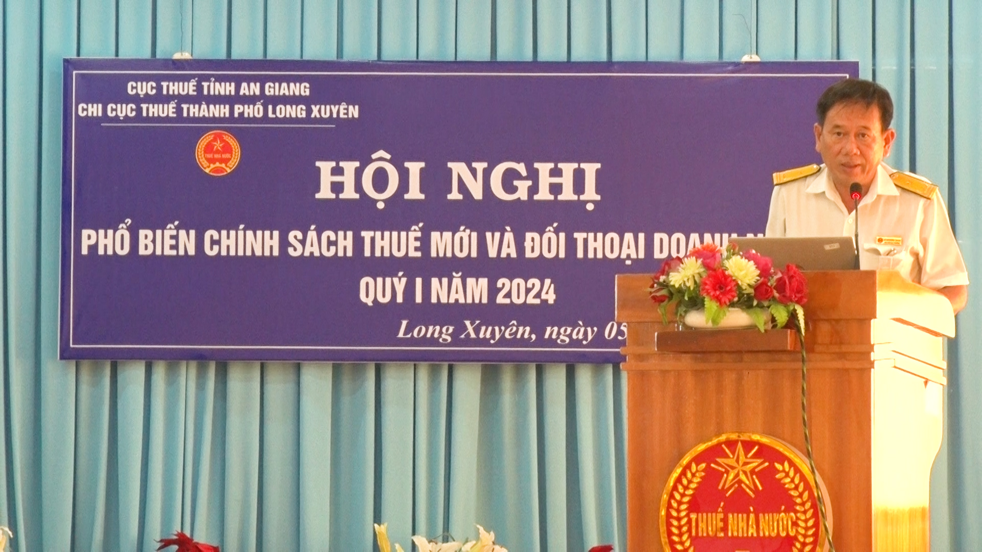 Nhằm nâng cao ý thức chấp hành pháp luật của người dân và doanh nghiệp trong việc thực hiện nghĩa vụ thuế. Sáng ngày 05/4, Chi cục Thuế TPLX tổ chức Hội nghị phổ biến chính sách thuế mới và đối thoại với trên 200 doanh nghiệp Quý I/2024. Ông Đặng Tự Thành Chi, Chi cục Trưởng Chi cục Thuế thành phố Long Xuyên đã đến dự.