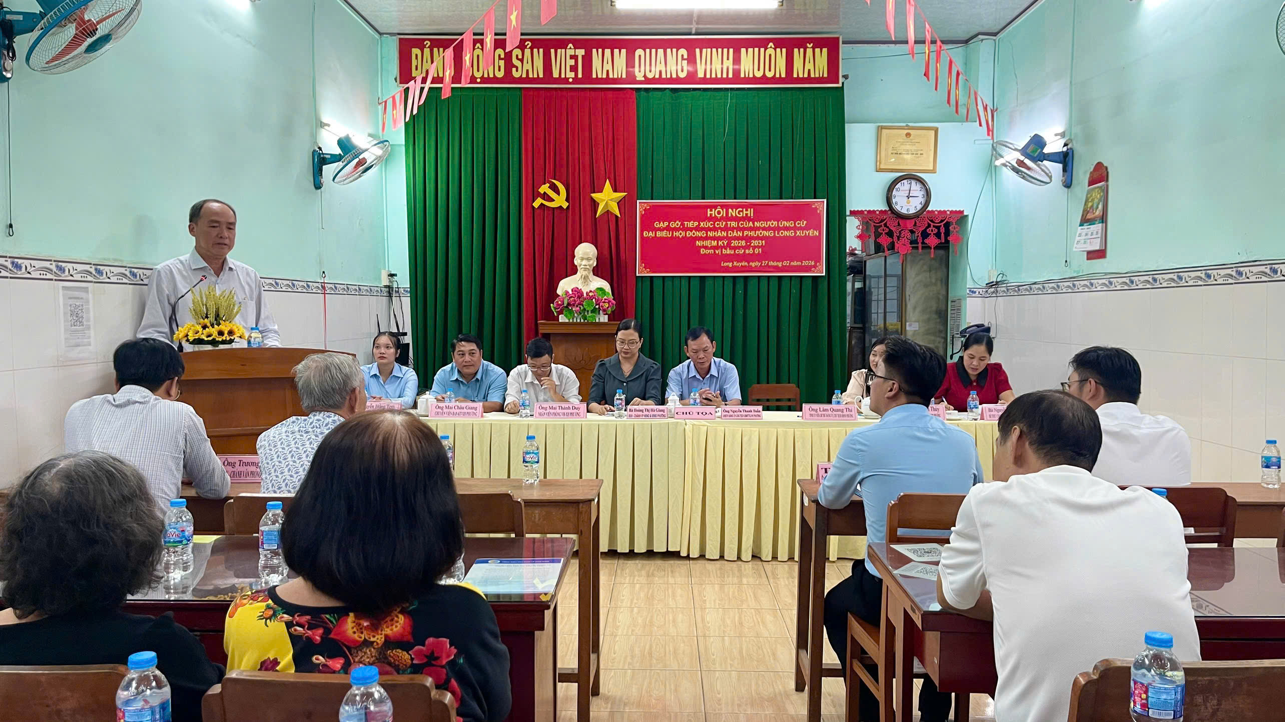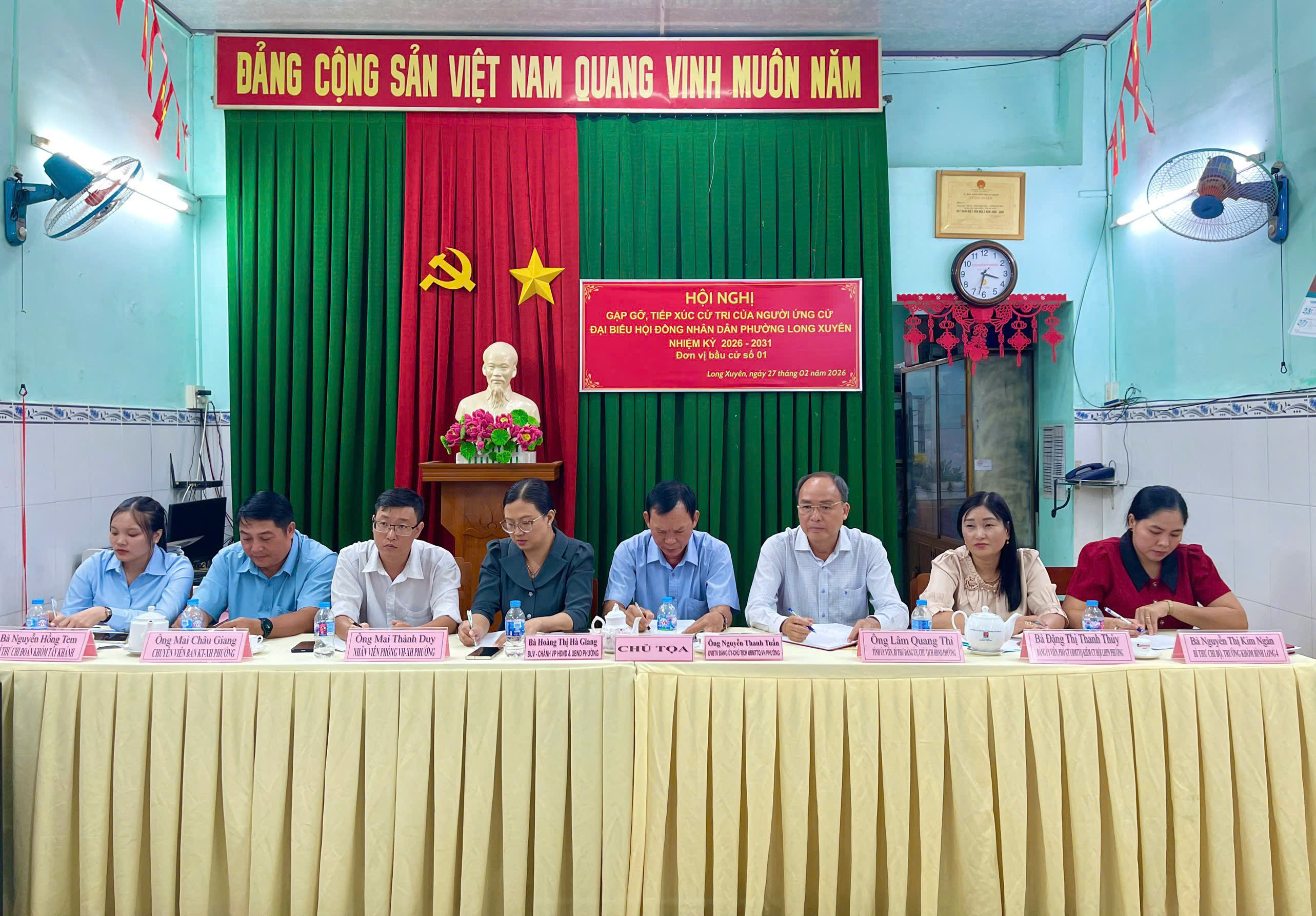 Chiều ngày 27/02, tại khóm Bình Long 1, Ban Thường trực Ủy ban MTTQ Việt Nam phường Long Xuyên phối hợp với UBND phường tổ chức Hội nghị gặp gỡ, tiếp xúc cử tri với những người ứng cử đại biểu Đại biểu Hội đồng nhân dân phường Long Xuyên, nhiệm kỳ 2026-2031 tthuộc đơn vị bầu cử số 1. Dự buổi tiếp xúc có đồng chí Lâm Quang Thi, Tỉnh uỷ viên, Bí thư Đảng uỷ, Chủ tịch HĐND phường.