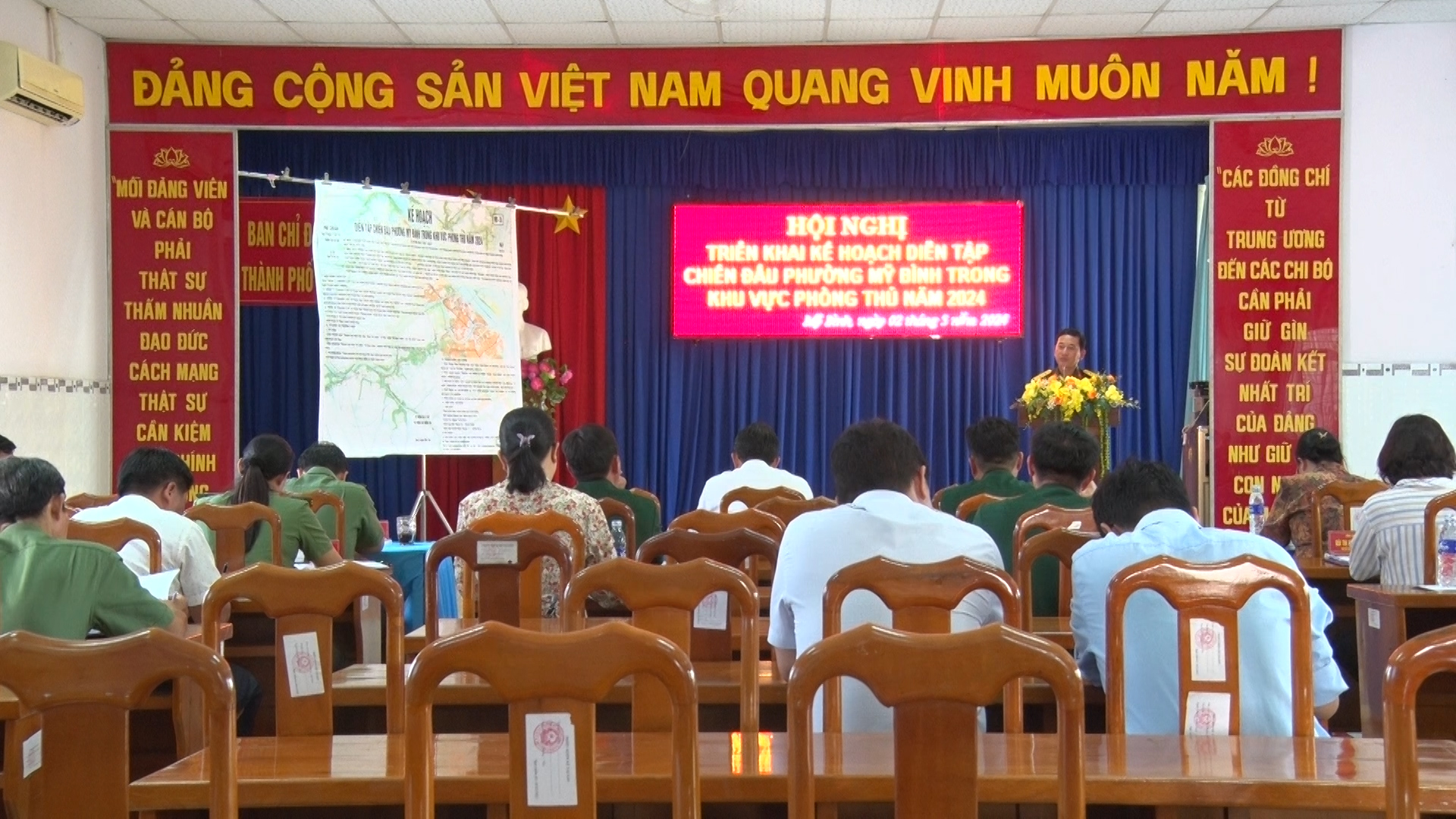Tại hội nghị, Ban tổ chức diễn tập đã quán triệt Nghị quyết tổ chức diễn tập của của Ban Thường vụ Thành ủy; Công bố Quyết định thành lập Ban chỉ đạo, Ban tổ chức diễn tập và Quyết định thành lập Tổ Đạo diễn, tổ đảm bảo diễn tập. Hội nghị cũng thông qua kế hoạch diễn tập chiến đấu phường Mỹ Bình trong khu vực phòng thủ năm 2024, gồm các nội dung: Chuyển lực lượng vũ trang vào các trạng thái sẵn sàng chiến đấu; chuyển hoạt động của địa phương vào trạng thái, tình trạng quốc phòng; tổ chức chuẩn bị và thực hành chiến đấu trong khu vực phòng thủ.