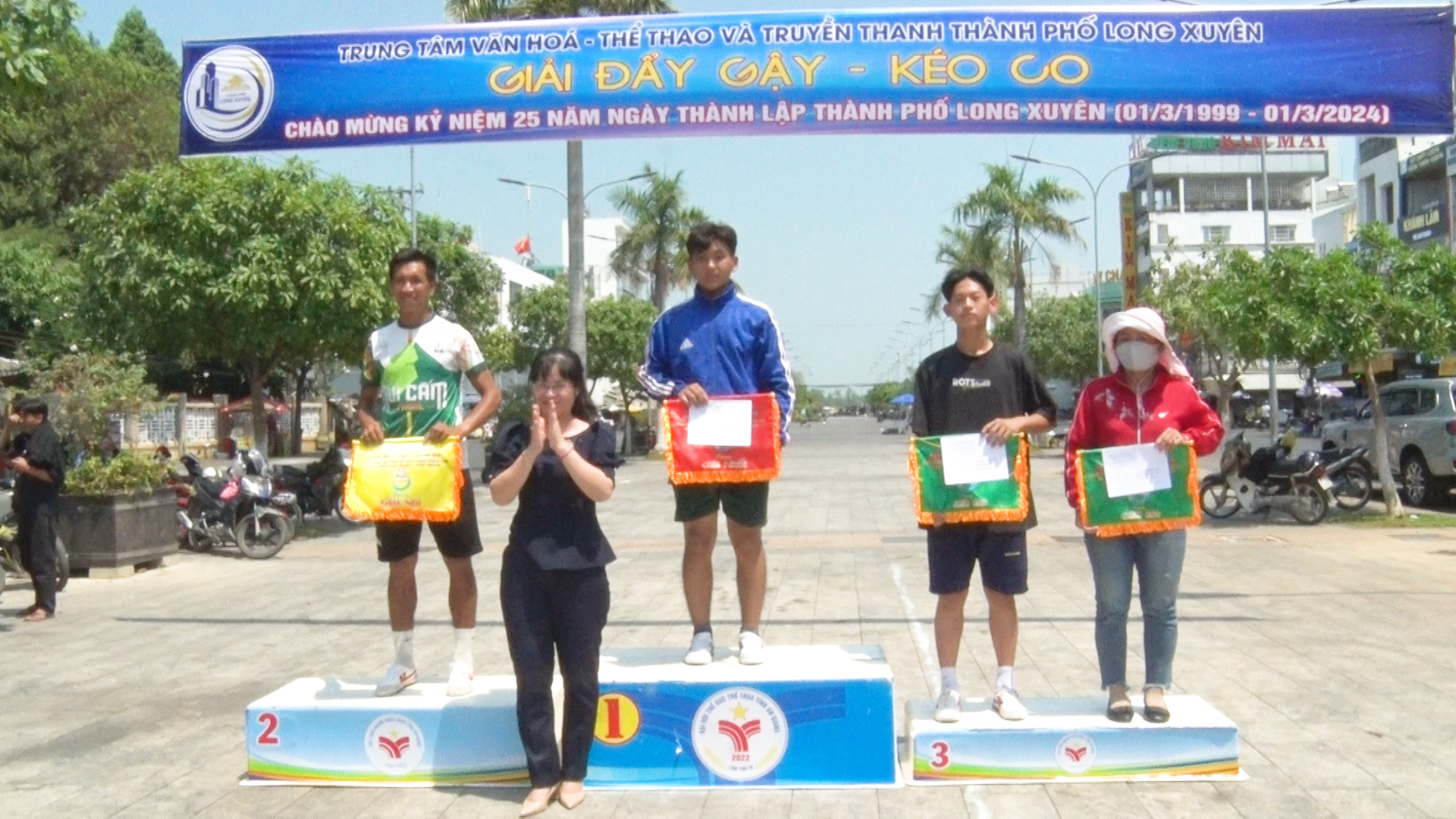 Nằm trong chuỗi hoạt động chào mừng kỷ niệm 25 năm thành lập thành phố Long Xuyên (01/3/1999 - 01/3/2024). Sáng ngày 25/2, Trung tâm Văn hóa - Thể thao và Truyền thanh TPLX tổ chức khai mạc giải Đẩy gậy - Kéo co. Bà Võ Thị Mỹ Bình, Giám đốc Trung tâm Văn hóa - Thể thao và Truyền thanh TPLX đã đến dự.
