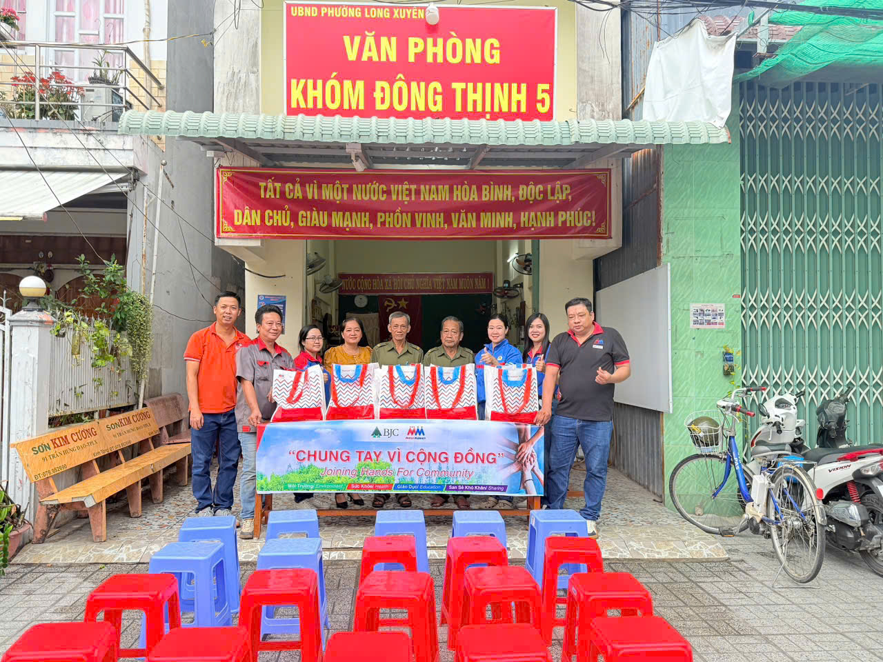 Chiều ngày 11/02/2026, Khóm Đông Thịnh 5 phối hợp cùng Siêu thị MM Market và các mạnh thường quân tổ chức trao 46 phần quà cho lực lượng làm nhiệm vụ tại cơ sở, các tổ trưởng dân phố và các hộ có hoàn cảnh khó khăn trên địa bàn khóm.