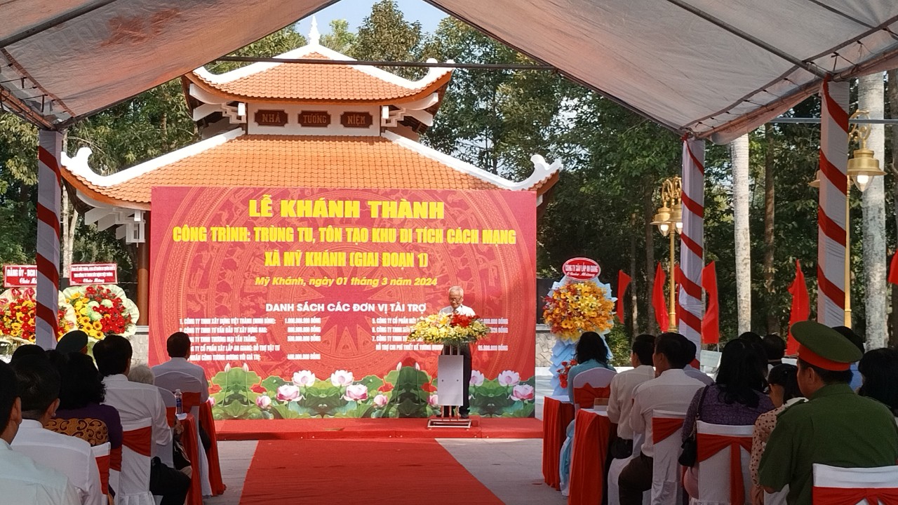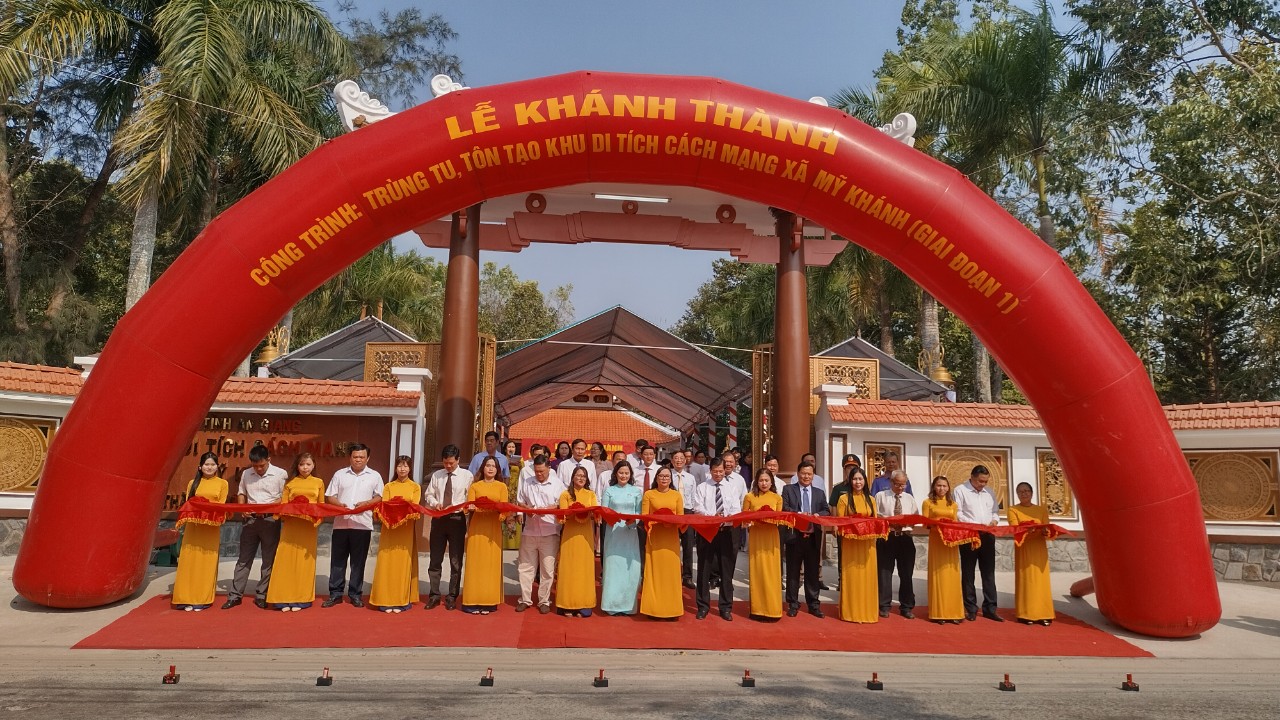 Trong không khí vui tươi, phấn khởi của buổi Lễ, các đại biểu đã cắt băng khánh thành công trình: Trùng tu, tôn tạo Khu di tích cách mạng xã Mỹ Khánh (giai đoạn 1). Đây là công trình ý nghĩa thể hiện truyền thống “Uống nước nhớ nguồn” của dân tộc, thể hiện sự tri ân của Đảng bộ, chính quyền và Nhân dân thành phố Long Xuyên đối với các Anh hùng Liệt sĩ đã hi sinh xương máu bảo vệ hòa bình, độc lập của dân tộc, tự do, hạnh phúc của Nhân dân.