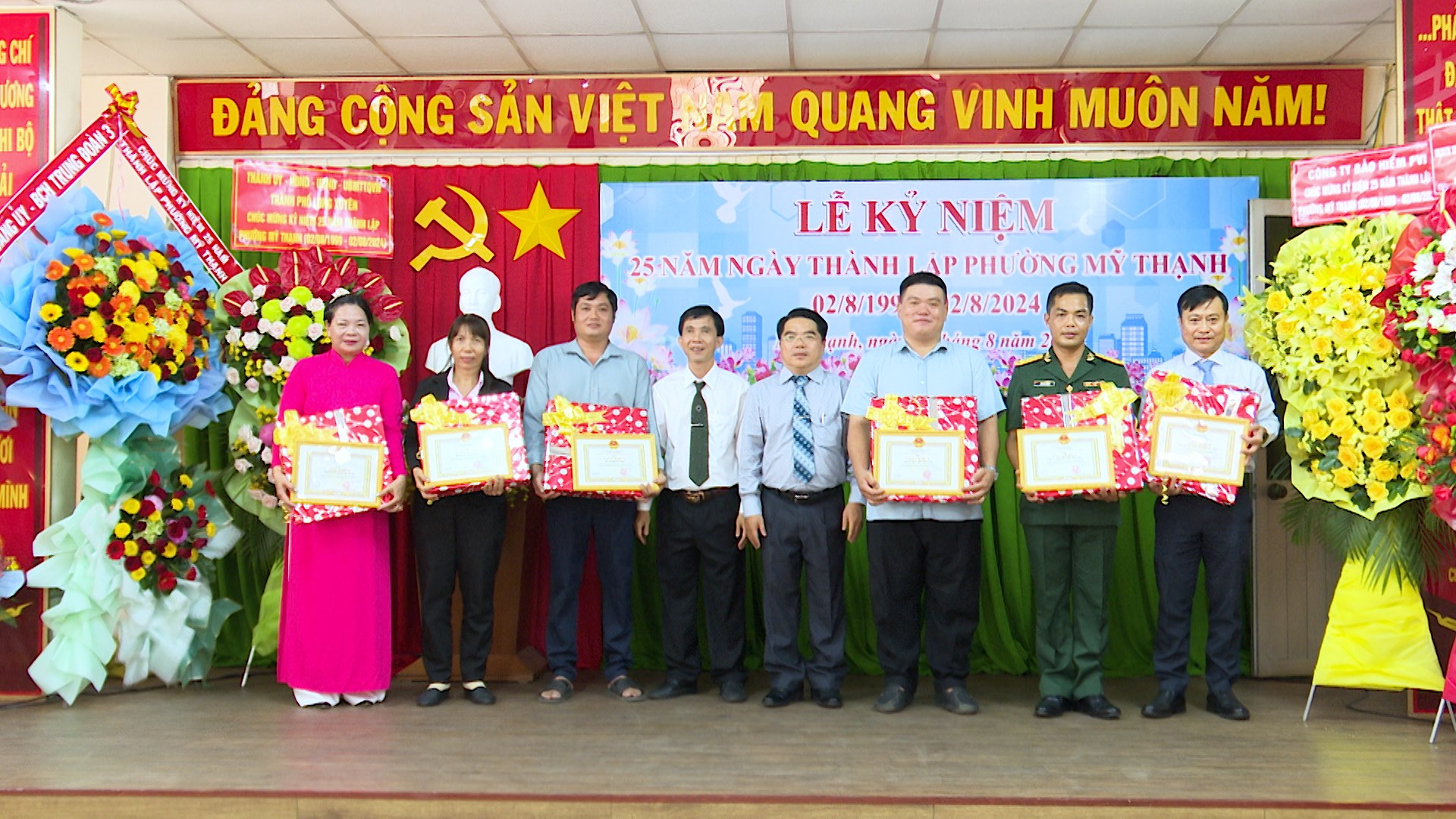 Dịp này, UBND phường Mỹ Thạnh đã tặng giấy khen cho 8 tập thể và 7 cá nhân đã có nhiều đóng góp trong công tác phát triển kinh tế, xã hội của địa phương qua 25 năm xây dựng và phát triển./.