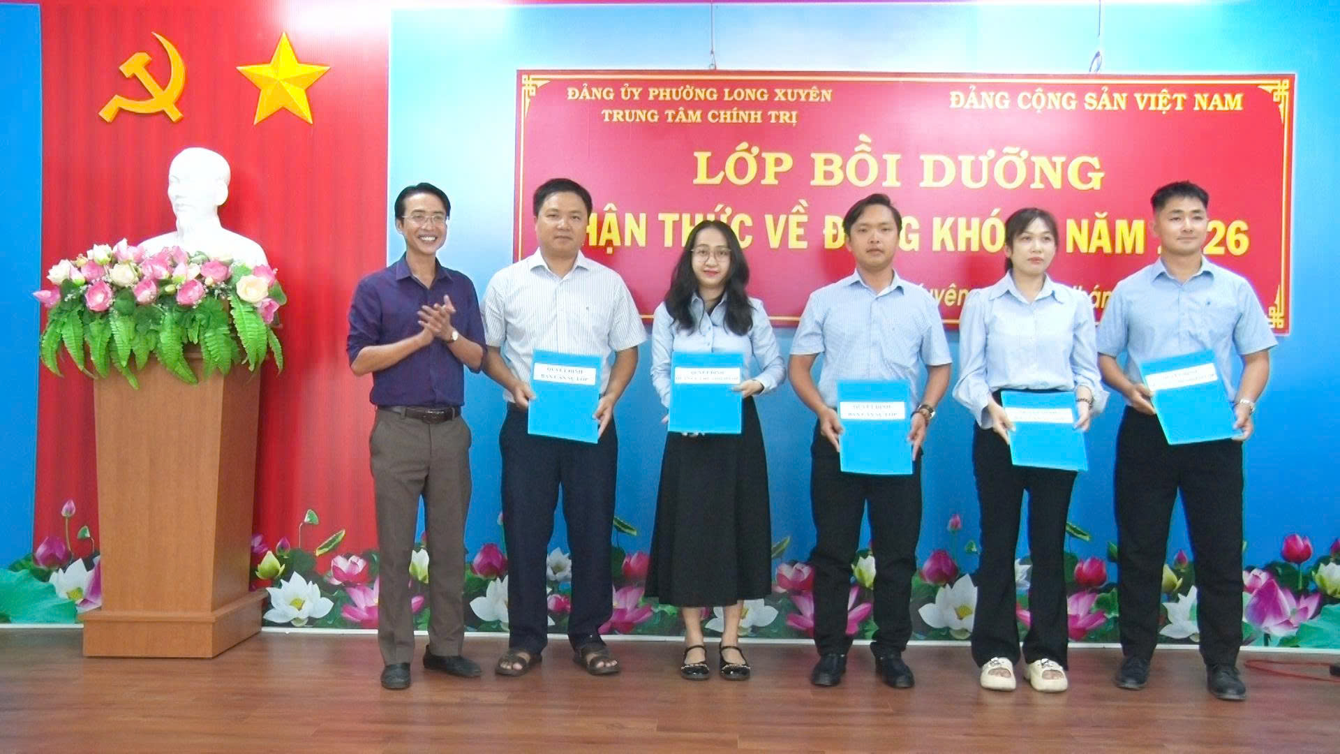 Chiều ngày 22-4, Ban Xây dựng Đảng phường phối hợp với Trung tâm Chính trị phường Long Xuyên tổ chức khai giảng lớp “Bồi dưỡng nhận thức về Đảng khóa I năm 2026” cho 81 quần chúng ưu tú đến từ các tổ chức cơ sở Đảng trong toàn Đảng bộ phường.