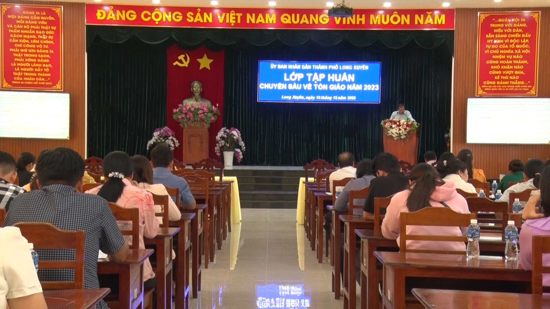 Sáng ngày 15-12, UBND thành phố Long Xuyên tổ chức Lớp tập huấn chuyên sâu về tôn giáo năm 2023 cho135 cán bộ, công chức làm công tác tín ngưỡng, tôn giáo trên địa bàn.