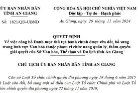Ủy ban nhân dân tỉnh ban hành Quyết định số 1821/QĐ-UBND, ngày 26/11/2024 về việc công bố danh mục thủ tục hành chính