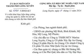 Ủy ban nhân dân thành phố Long Xuyên ban hành công văn số 10162/UBND-KT, ngày 21/11/2024 về việc triển khai thực hiện