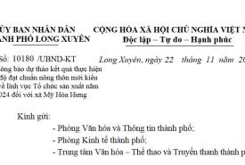 Ủy ban nhân dân thành phố Long Xuyên ban hành công văn số 10181/UBND-KT, ngày 22/11/2024 về việc lấy ý kiến kết quả t