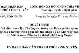 Ủy ban nhân dân thành phố Long Xuyên ban hành Quyết định số 8792/QĐ-UBND, ngày 15/10/2024 về việc thành lập Tổ công