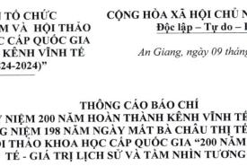 Thông cáo báo chí lễ kỷ niệm 200 năm hoàn thành kênh Vĩnh Tế (1824-2024) tưởng niệm 198 năm ngày mất Bà Châu Thị Tế (