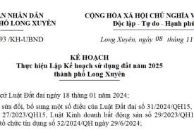 Ủy ban nhân dân thành phố Long Xuyên ban hành kế hoạch số 9693/KH-UBND, ngày 08/11/2024 Thực hiện lập kế hoạch sử dụn