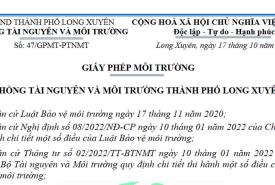 Phòng Tài nguyên và Môi trường thành phố Long Xuyên cấp Giấy phép môi trường số 47/GPMT-PTNMT, ngày 17/10/2024 cho h