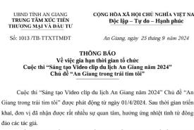 Trung tâm xúc tiến thương mại và đầu tư An Giang Thông báo số 1013/TB-TTXTTMĐT, ngày 25/9/2024 về việc gia hạn thời g