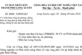 Ủy ban nhân dân thành phố ban hành công văn số 8000/UBND-KT, ngày 20/9/2024 về việc triển khai công tác phòng, chống