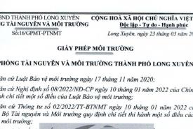 Giấy phép môi trường năm 2023 của phòng Tài nguyên và Môi trường thành phố Long Xuyên