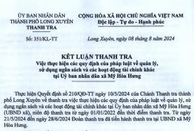 Thanh tra thành phố Long Xuyên ban hành Kết luận Thanh tra số 351/KL-TT ngày 08/8/2024 về thực hiện các quy định...