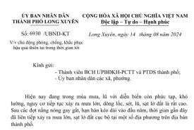Ủy ban nhân dân thành phố Long Xuyên ban hành công văn số 6930/UBND-KT về việc chủ động phòng, chống,khắc phục hậu qu