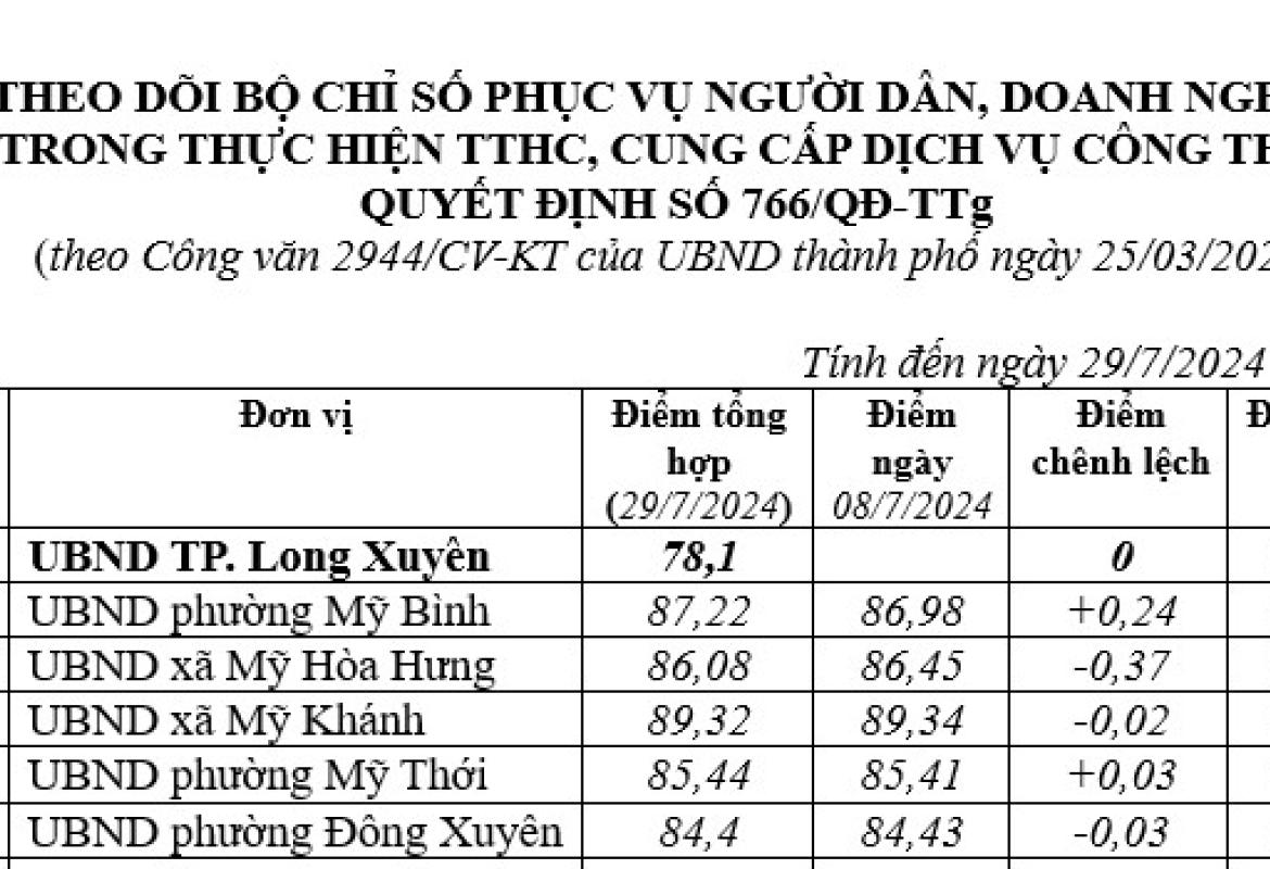 Theo dõi bộ chỉ số phục vụ người dân, doanh nghiệp trong thực hiện TTHC, cung cấp dịch vụ công theo Quyết địn