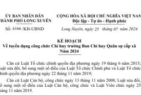 Ủy ban nhân dân thành phố Long Xuyên ban hành Kế hoạch số 6166/KH-UBND, ngày 25/7/2024 về tuyển dụng công chức Chỉ hu