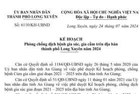 UBND thành phố Long Xuyên ban hành Kế hoạch số 6110/KH-UBND, ngày 24/7/2024 Phòng chống dịch bệnh gia súc, gia cầm tr