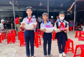 Khóm Nguyễn Du vừa tổ chức trao tặng quà cho các em học sinh có hoàn cảnh khó khăn nhân dị
