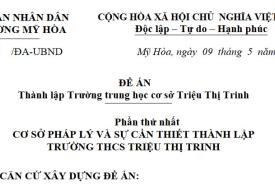 UBND phường Mỹ Hòa thành phố Long Xuyên ban hành Đề án số 02 thành lập trường trung học cơ sở Triệu Thị Trinh