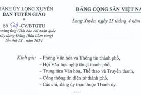 Ban Tuyên giáo Thành ủy ban hành Công văn số 564-CV/BTGTU, ngày 25/4/2024 về việc hưởng ứng Giải báo chí toàn quốc về