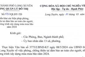 Phòng Quản lý đô thị thành phố Long Xuyên ban hành công văn số 590/QLĐT-ĐT, ngày 10/5/2024 về việc triển khai các biệ