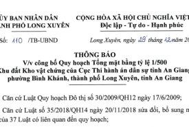 THÔNG BÁO về việc công bố Quy hoạch Tổng mặt bằng tỷ lệ 1/500 Khu đất Kho vật chứng của Cục Thi hành án dân sự tỉnh A