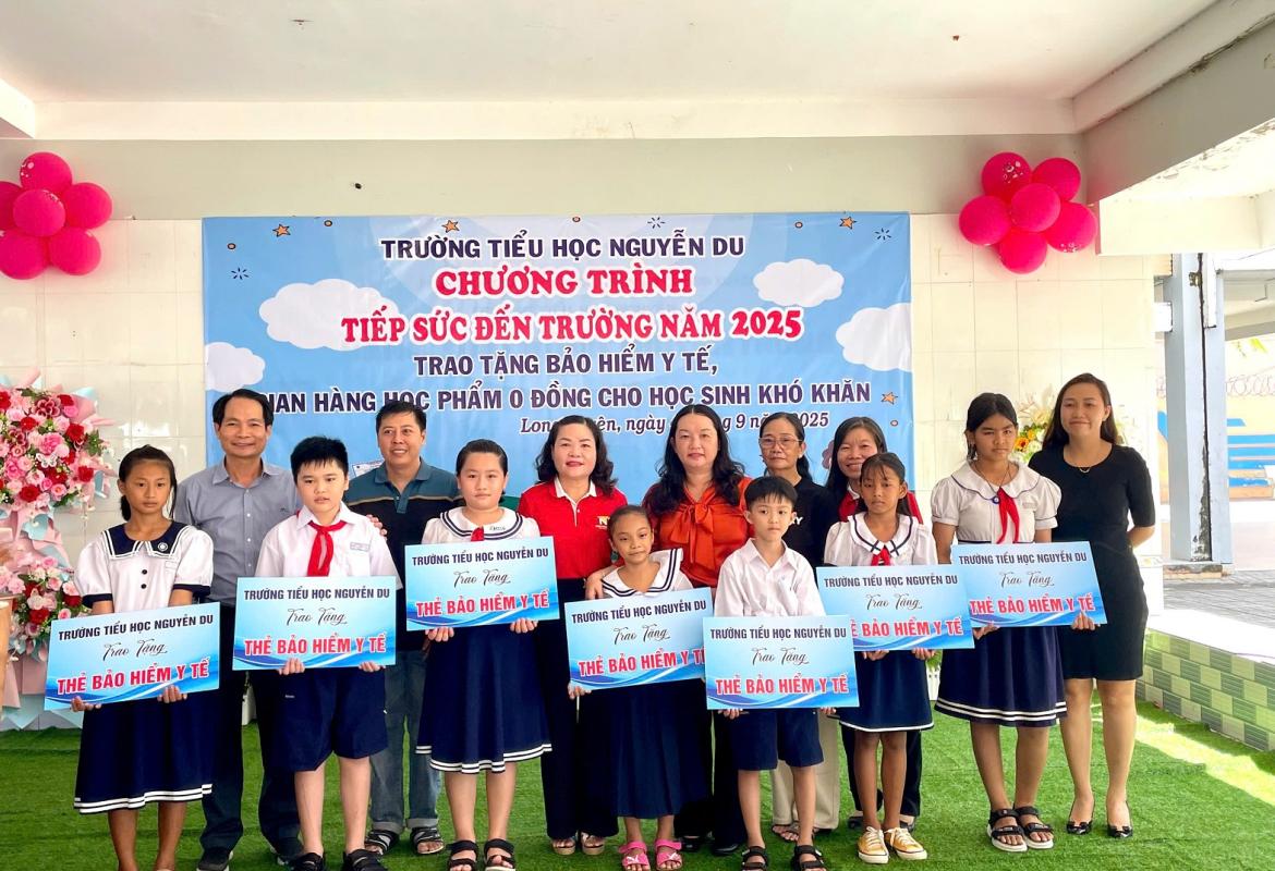 Chiều ngày 04/9/2025, Trường Tiểu học Nguyễn Du đã tổ chức chương trình “Tiếp sức đến trường” để trao tặng BHYT, học