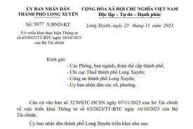 Ủy ban nhân dân thành phố Long Xuyên ban hành Công văn số 5877/UBND-KT, ngày 23/11/2023 về việc triển khai thực hiện