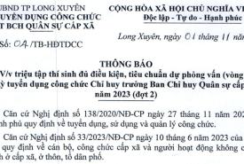 THÔNG BÁO V/v triệu tập thí sinh đủ điều kiện, tiêu chuẩn dự phỏng vấn (vòng 2) kỳ tuyển dụng công chức Chỉ huy trưởn