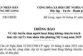 Ủy ban nhân dân phường Mỹ Long ban hành thông báo về việc tuyển chọn người hoạt động không chuyên trách