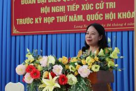 Phát biểu tại các buổi tiếp xúc, Phó Chủ tịch nước Cộng hòa XHCN Việt Nam Võ Thị Ánh Xuân biểu dương, chúc mừng kết quả tỉnh An Giang nói chung, các địa phương nói riêng đạt được trong phát triển kinh tế - xã hội quý I/2023, quốc phòng – an ninh thời gian qua. Đặc biệt, trong bối cảnh còn nhiều khó khăn thách thức, nhưng An Giang đã duy trì tốc độ tăng trưởng kinh tế; tập trung cho các công trình giao thông trọng điểm, như tuyến nối Quốc lộ 91 và tuyến tránh thành phố Long Xuyên; cao tốc Châu Đốc – Cần Thơ – Sóc Trăng…