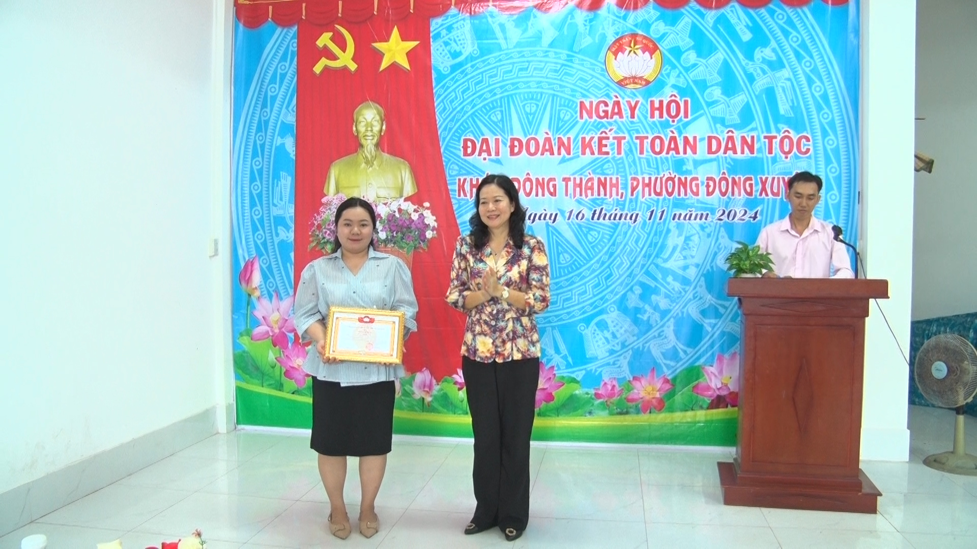 Dịp này, Ban vận động khóm tặng 10 phần quà cho các hộ cận nghèo cư ngụ trên địa bàn khóm. UBND thành phố Long Xuyên và phường Đông Xuyên tặng giấy khen cho có thành tích tiêu biểu trong cuộc vận động “Toàn dân đoàn kết xây dựng Nông thôn mới, đô thị văn minh”, “Gương người tốt, việc tốt” và “Gia đình văn hóa tiêu biểu” năm 2024 tại khóm.