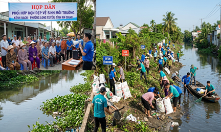 Tổ chức các hoạt động vệ sinh môi trường, cải tạo cảnh quan rạch Bà Bầu, Ông Mạnh, Cái Sơn thuộc phường Long Xuyên năm 2026 góp phần giảm thiểu ô nhiễm, cải thiện môi trường, nâng cao ý thức trách nhiệm của cộng đồng dân cư về giữ gìn vệ sinh môi trường tại các khu dân cư, khu vực công cộng, các tuyến kênh, rạch nội ô phường Long Xuyên, chung tay bảo vệ môi trường phường Long Xuyên xanh - sạch – đẹp, đô thị văn minh, thương mại, nghĩa tình.