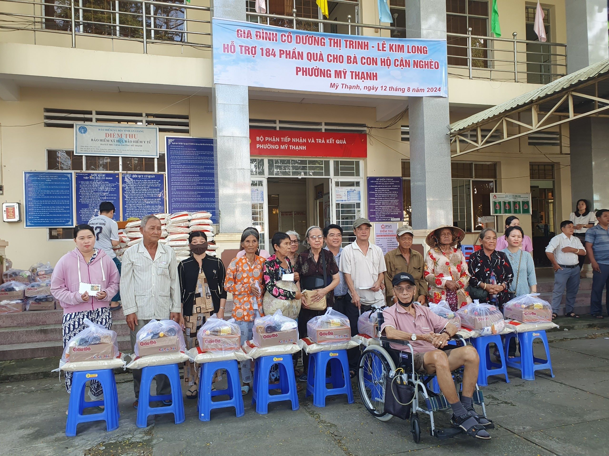 Sáng ngày 12/8/2024, Ủy ban MTTQ phường Mỹ Thạnh phối hợp với gia đình cô Dương Thị Trinh (mạnh thường quân) trên địa bàn phường tổ chức tặng quà cho bà con hộ cận nghèo phường Mỹ Thạnh. Tham dự có gia đình cô Dương Thị Trinh; ông Huỳnh Quốc Dũng – Phó Chủ tịch UBND phường, bà Nguyễn Thanh Phượng – Chủ tịch UB MTTQ phường cùng gần 200 hộ gia đình khó khăn trên địa bàn phường tham dự.