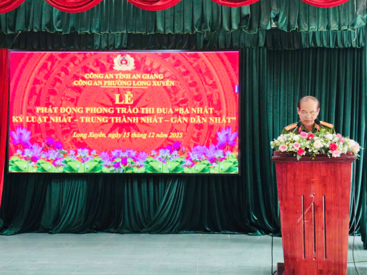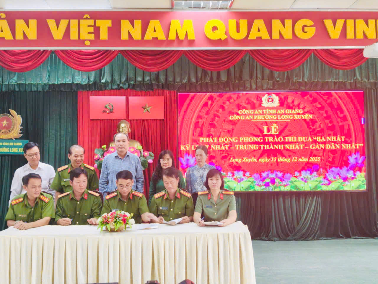 Sáng ngày 15/12/2025, Công an phường Long Xuyên tổ chức Lễ phát động phong trào thi đua “Ba nhất”: Kỷ luật nhất – Trung thành nhất – Gần dân nhất do đồng chí Thượng tá Võ Văn Chỉnh – Bí thư Đảng bộ, Trưởng Công an phường chủ trì buổi lễ.