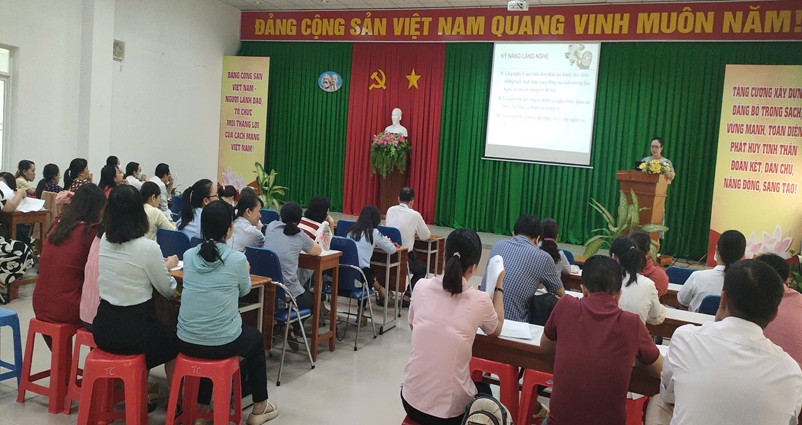 Thực hiện Kế hoạch 539/KH-TTYT ngày 04/03/2025 của Trung tâm Y tế (TTYT) thành phố Long Xuyên (TPLX) về việc Tập huấn nâng cao năng lực truyền thông giáo dục sức khỏe và quy tắc ứng xử cho nhân viên y tế, năm 2025. Nhằm nâng cao năng lực về truyền thông giáo dục sức khoẻ cho cán bộ làm công tác y tế trên địa bàn thành phố, chiều ngày 17/03/2025, Trung tâm Y tế tổ chức tập huấn nâng cao năng lực, kỷ năng truyền thông giáo dục sức khỏe và quy tắc ứng xử cho 65 nhân viên y tế khoa, phòng và 12 Trạm y tế (TYT) phường xã trên địa bàn thành phố.