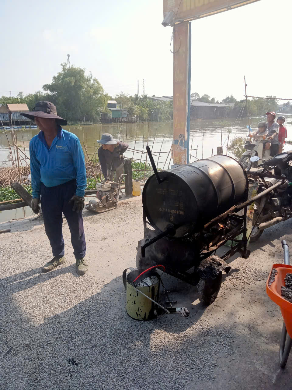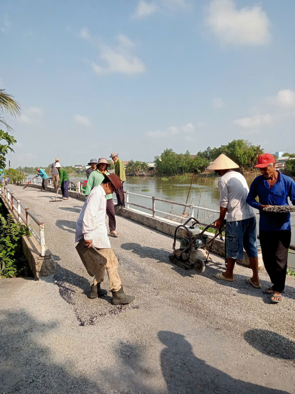Phát huy tinh thần đoàn kết, chung tay xây dựng nông thôn đô thị văn minh, Ban Nhân dân khóm Tây Huê 2 đã tích cực vận động Nhân dân đóng góp kinh phí và ngày công lao động để cải tạo, chấp vá và trải nhựa các đoạn đường bị hư hỏng trên tuyến đường từ cầu Cần Thăng đến cầu Mương Cạn.