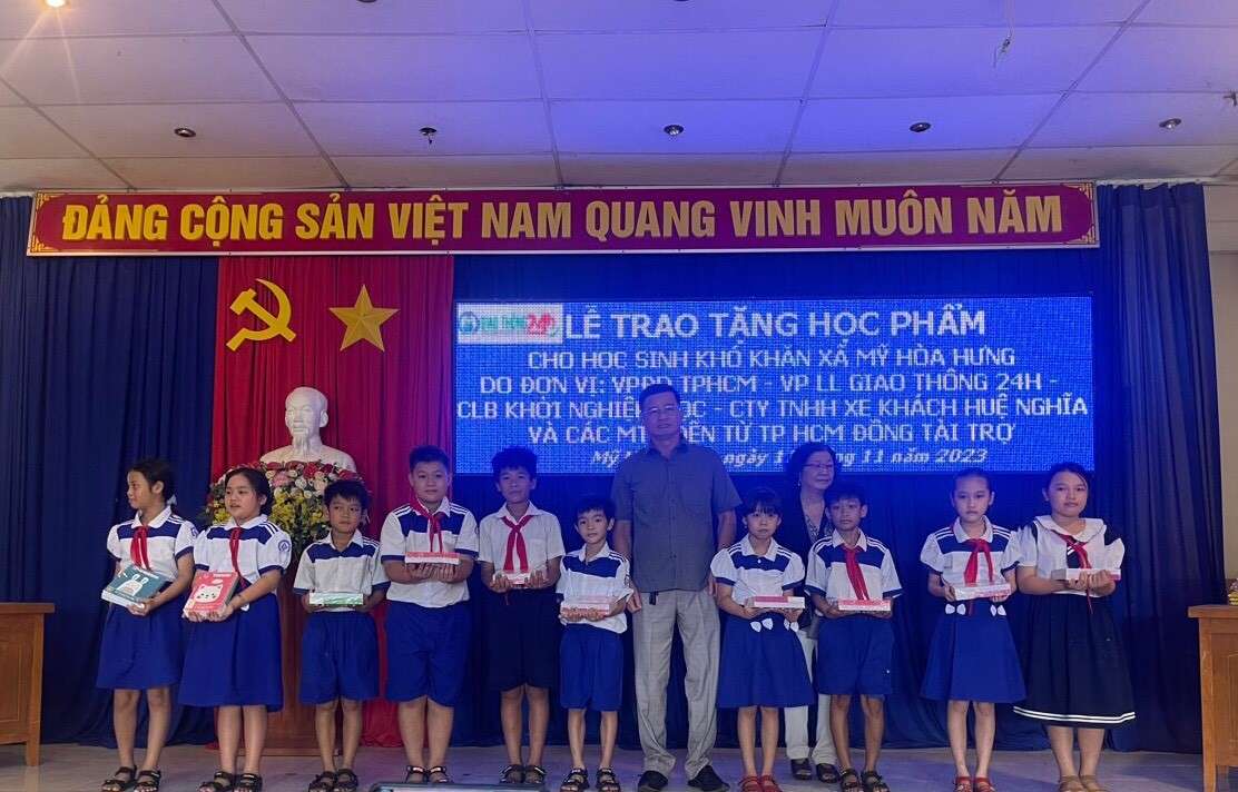 Ngày 11/11, đại diện Văn phòng Giao thông 24h tại TP.Hồ Chí Minh cùng Văn phòng liên lạc giao thông 24h tại Đồng Nai phối hợp với Câu lạc bộ Khởi nghiệp Mộc - Công ty trách nhiệm hữu hạn Huệ Nghĩa cùng các mạnh thường quân, doanh nghiệp đến thăm và tặng 5.000 quyển tập cho các em học sinh hiếu học có hoàn cảnh khó khăn tại xã Mỹ Hòa Hưng.
