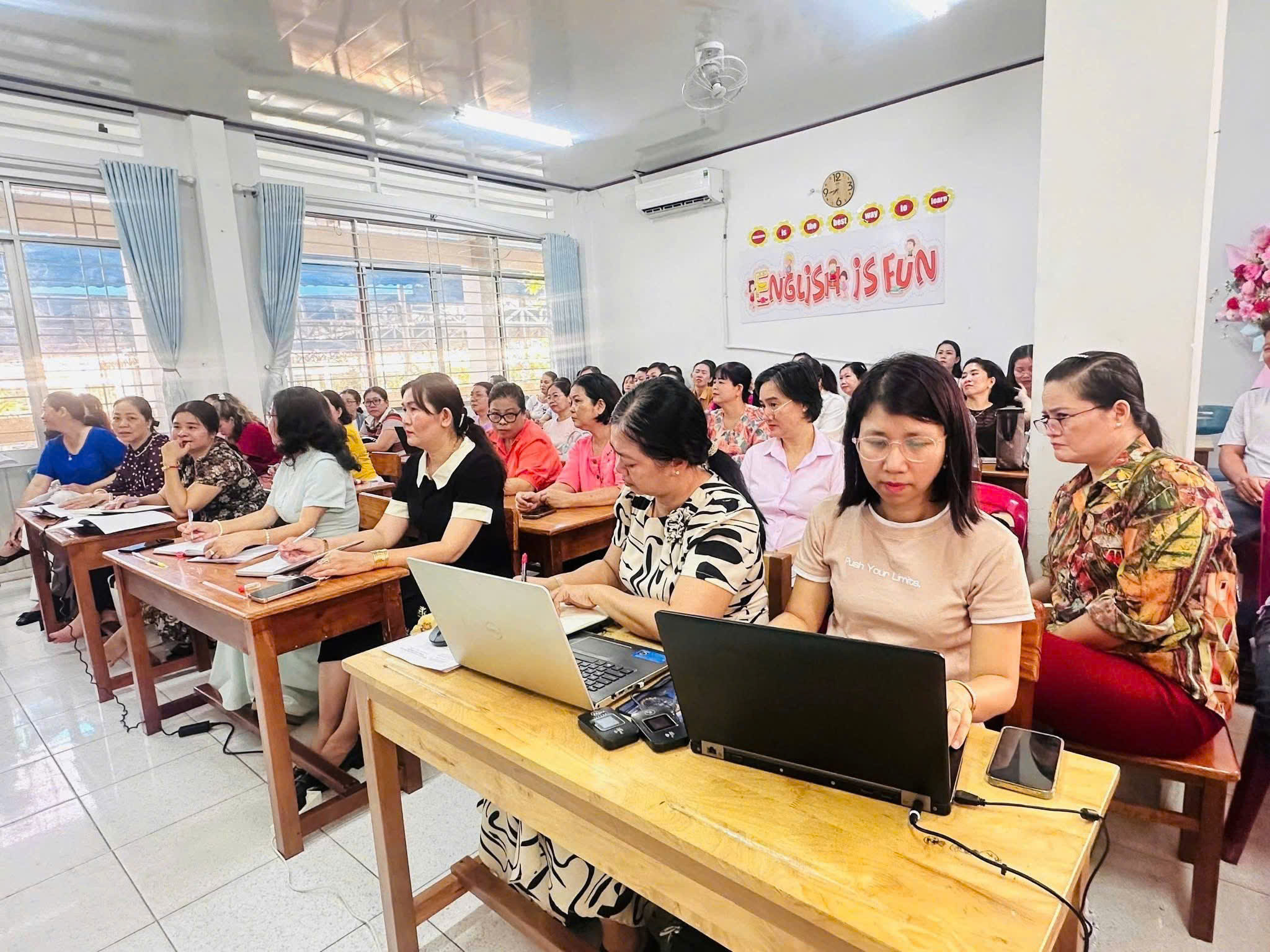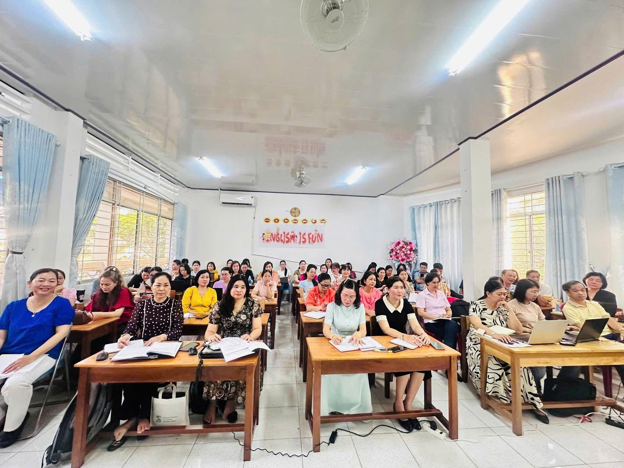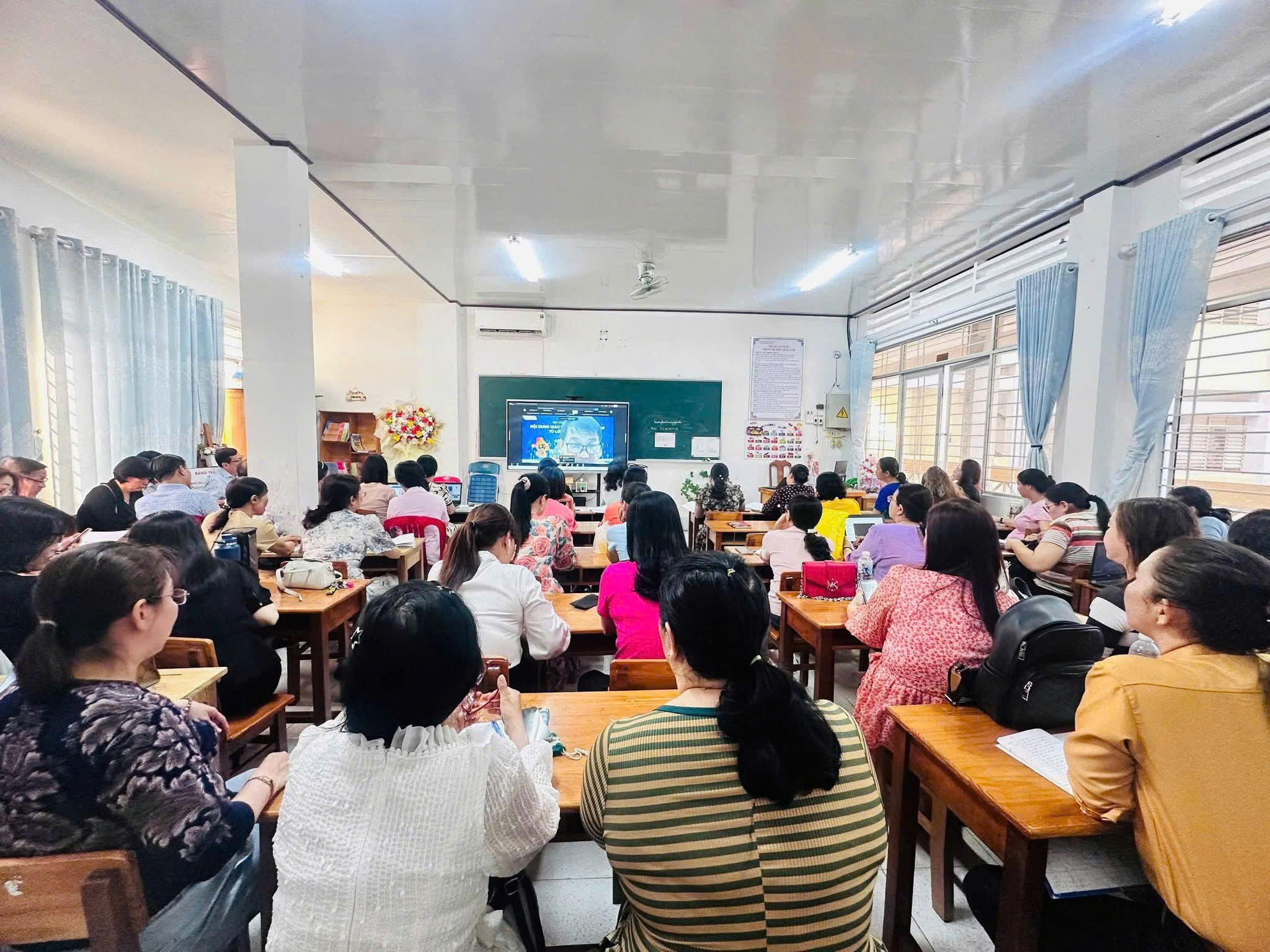 Tham dự buổi tập huấn có 64 cán bộ quản lý và giáo viên của nhà trường. Đây là hoạt động thiết thực nhằm từng bước nâng cao năng lực chuyên môn, đáp ứng yêu cầu đổi mới giáo dục trong bối cảnh chuyển đổi số ngày càng mạnh mẽ.