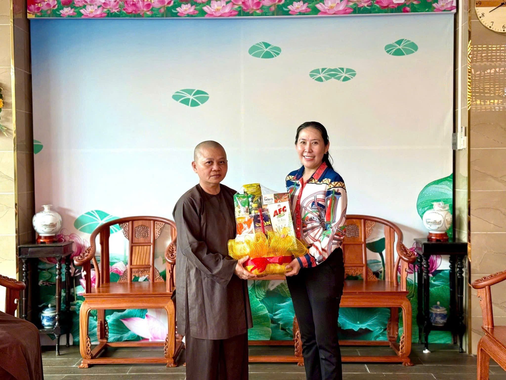 Tiếp đoàn có Thượng tọa Thích Thường Tấn – Ủy viên Thường trực Ban Trị sự Giáo hội Phật giáo Việt Nam tỉnh An Giang và Ni sư Thích Nữ Như Mai – Phó Ban Trị sự Giáo hội Phật giáo Việt Nam tỉnh An Giang.